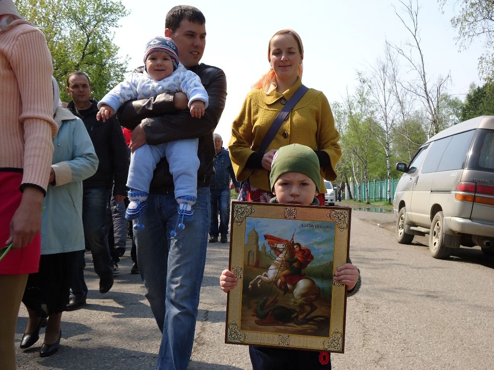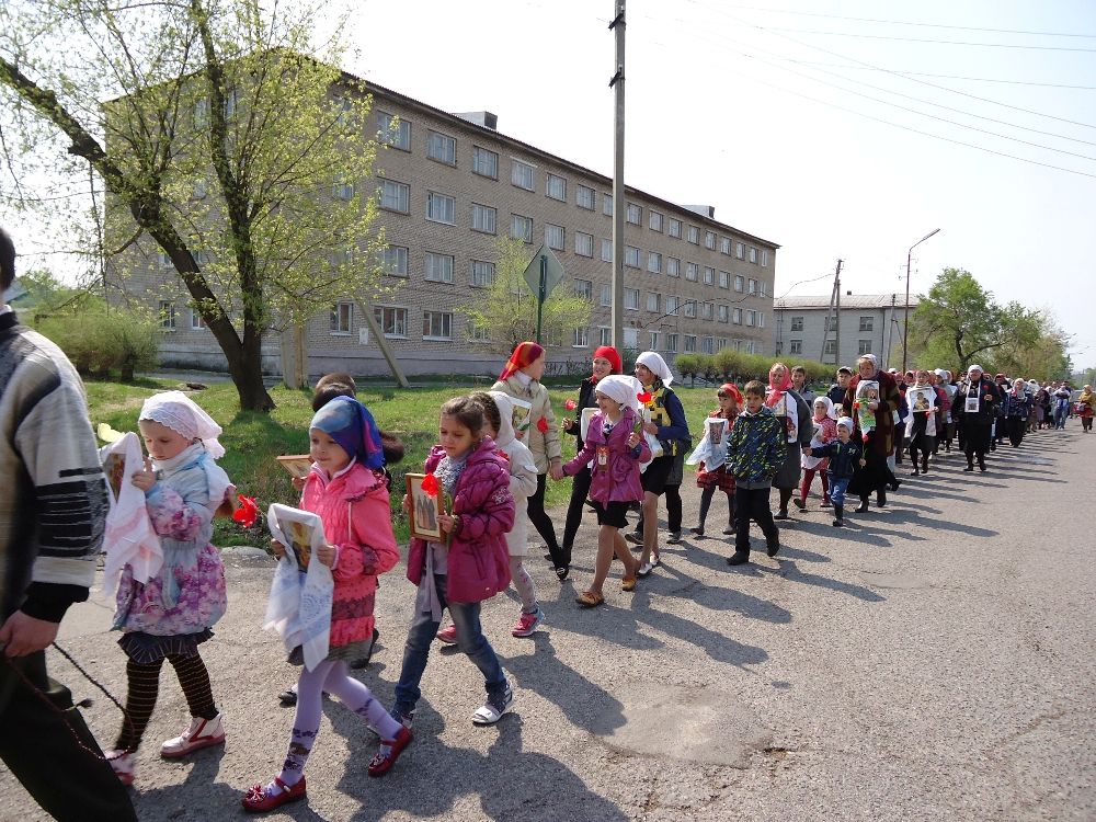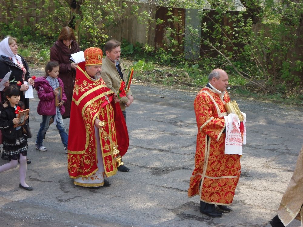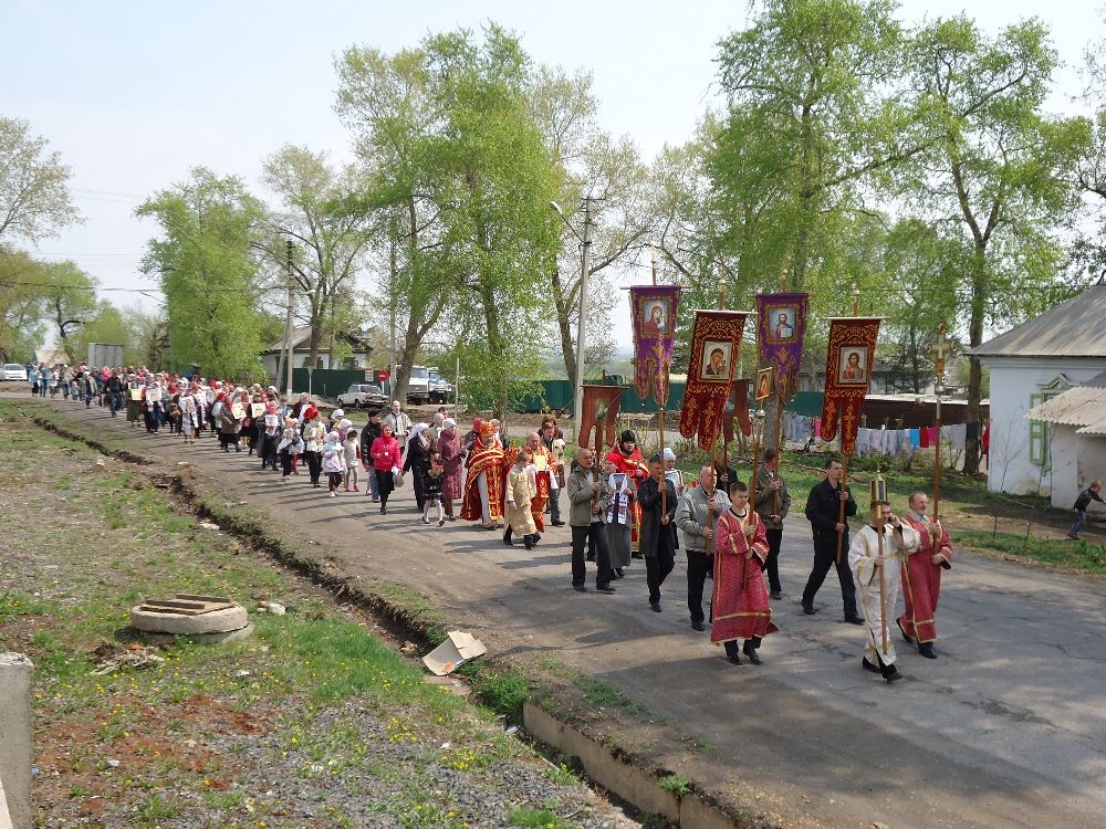 4 мая. Спасск-Дальний. Традиционно отметили День жен-мироносиц в храме Вознесения Господня г. Спасск-Дальний. После богослужения, настоятель храма протоиерей Владимир Капитанюк поздравил христианок с праздником и вручил каждой цветок. Затем он возглавил крестный ход в котором приняли участие более 130 человек, в том числе и ученики воскресной школы. С хоругвями, иконами и цветами, с пасхальными песнопениями верующие прошли по центру села, искренне поздравляя всех с праздником, а также молясь о мире на Украине.