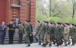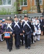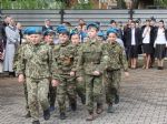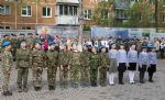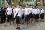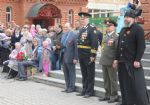 Затем на прихрамовой площади прошел строевой смотр среди учащихся гимназии. Принимали праздничный парад, в том числе, и почетные гости – ветераны и представители силовых структур.