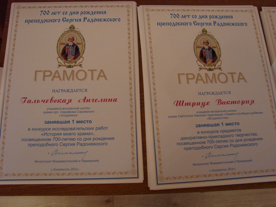 Владивосток. 20 мая 2014 года в актовом зале епархиального управления состоялся завершающий этап регионального этапа Всероссийского конкурса детского творчества, посвящённого 700-летию преподобного Сергия Радонежского. На подведение итогов конкурса съехались более 60 детей из разных уголков епархии.