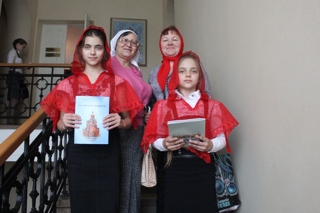 После обеда в трапезной епархиального управления дети, родители, преподаватели под руководством заместителя руководителя епархиального отдела религиозного образования и катехизации Татьяны Ивановны Гончаровой отправились в Приморский театр юного зрителя, в холле которого прошло открытие выставки рисунков и поделок. Победители конкурса с интересом рассматривали конкурсные работы. Неподдельный интерес вызвали поделки из самых разных материалов – ткани, пластилина, папье-маше, природных материалов.