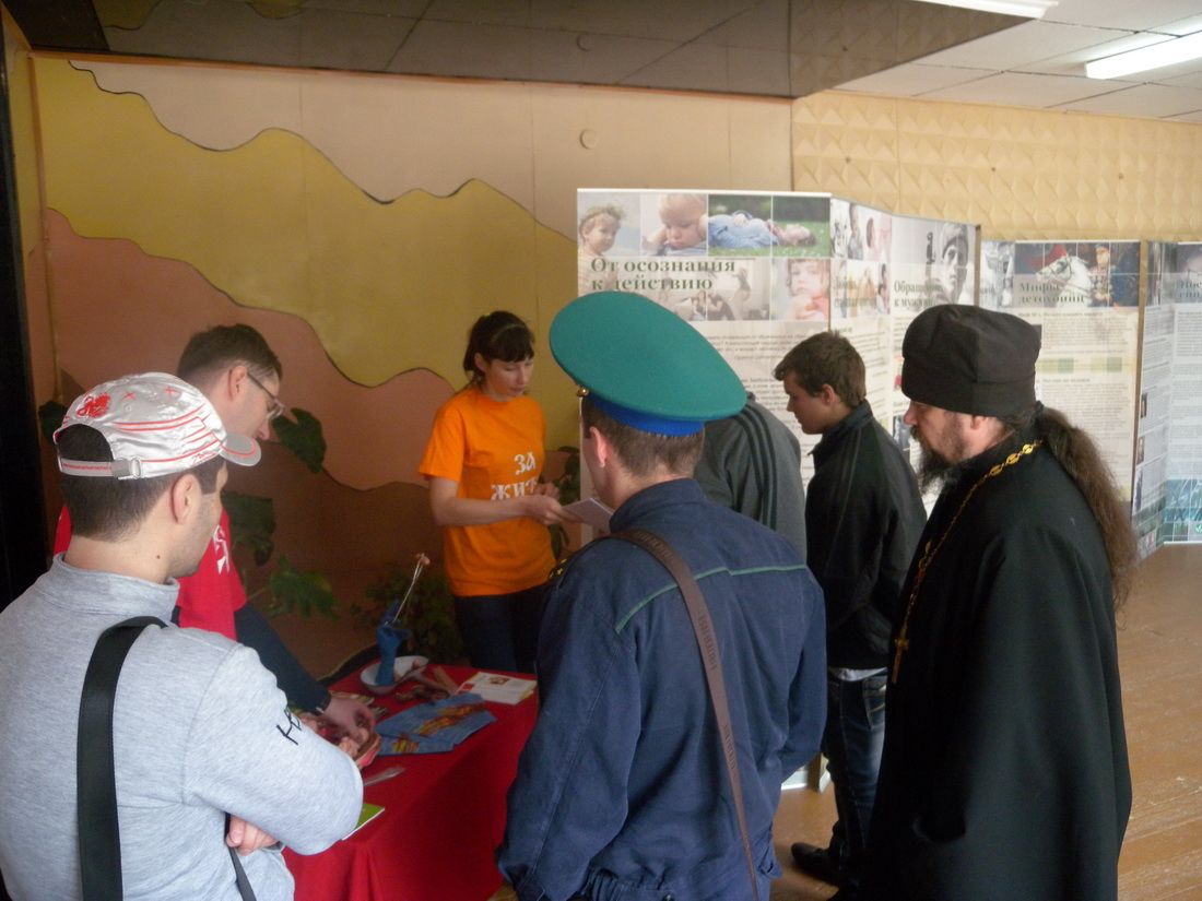 В местный ДК, где разместилась выставка «Молчаливая революция», пришло много людей. В рамках работы выставки состоялась беседа с гинекологом и с гостями из Владивостока. Плакаты Движения «Воины Жизни», содержащие документальные свидетельства о детском геноциде – фотографии убитых абортами детей – вызвали живой отклик у пришедших на выставку. Активисты раздали листовки против абортов, собрали подписи о запрете абортов на государственном уровне. Елена Владимировна Волошина, сотрудник Центра защиты материнства и детства "Колыбель", напомнила собравшимся о том, что сейчас аборты делают бесплатно, то есть за деньги, собранные с налогоплательщиков – то есть нас с вами, и таким образом все граждане страны финансируют убийства нерождённых детей.