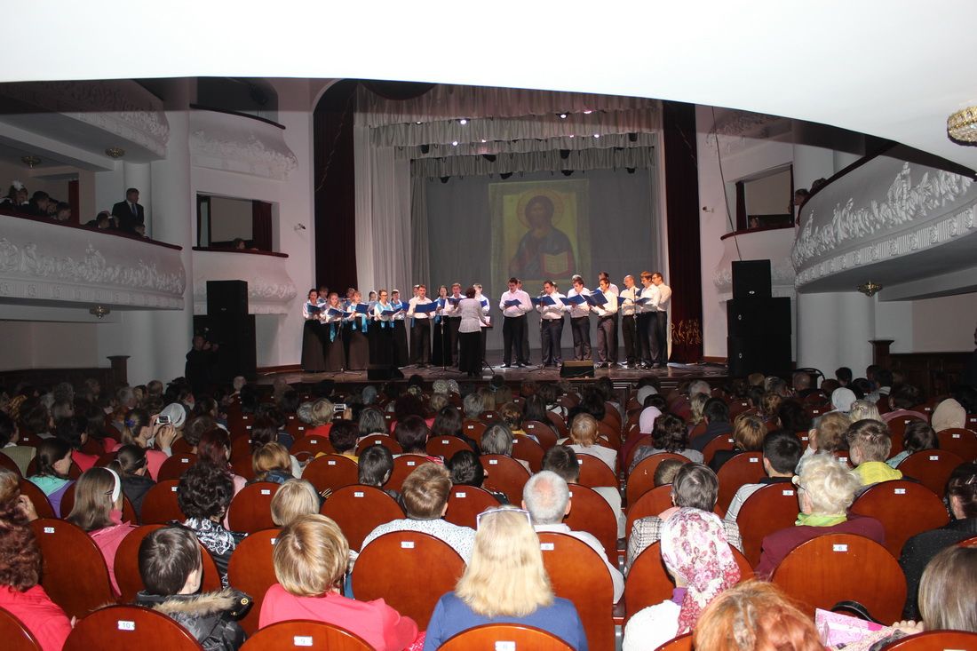 Перед началом концерта в холле филармонии Миссионерский и молодёжный отделы епархии провели просветительскую акцию: ребята раздавали зрителям буклеты к 700-летию святого Сергия Радонежского.
