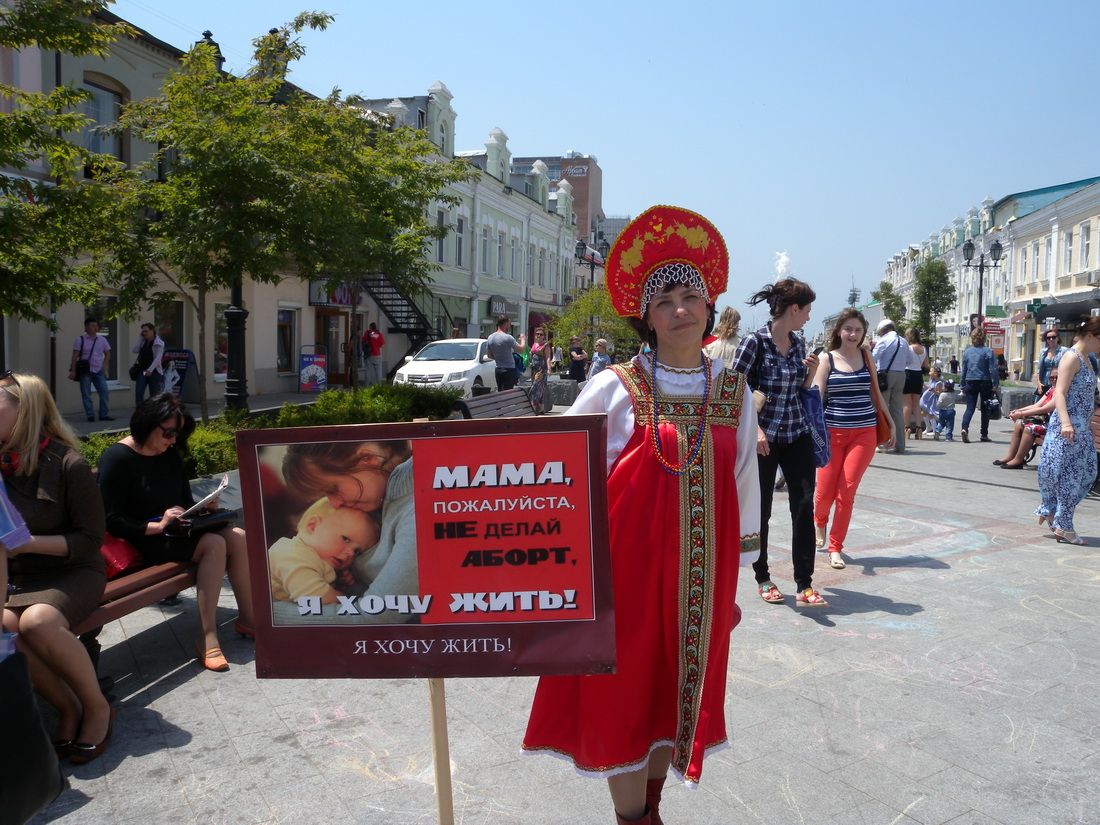Владивосток. 31 мая – 1 июня 2014 года состоялась ежегодная международная общецерковная акция «Россия — за жизнь! Россия — без абортов!», которую координирует Синодальный отдел по делам молодежи и объединение православных молодежных движений «Георгиевцы!». По всей России, более чем в 60 регионах, прошли мероприятия, направленные на противодействие абортам и популяризацию семейных ценностей. Акция приурочена к Международному Дню защиты детей.
