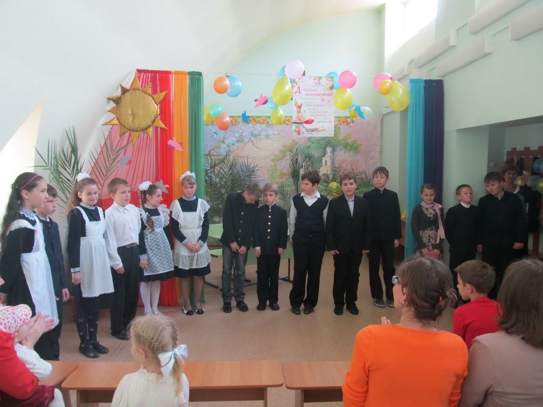 После торжественной церемонии дети показали инсценированное представление о пройденных учебных годах. В программе праздника были шуточные песни и стихи в исполнении выпускников, весёлые школьные истории. В родном классе на интерактивной доске показали подборку фотографий, а на школьном дворе взрослые накрыли столы с угощением и организовали игровую программу на свежем воздухе.