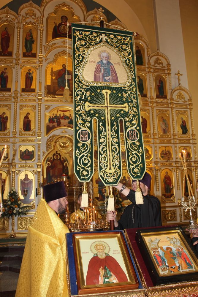 Началось перенесение хоругви преп. Сергия Радонежского по храмам епархии