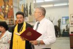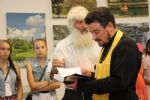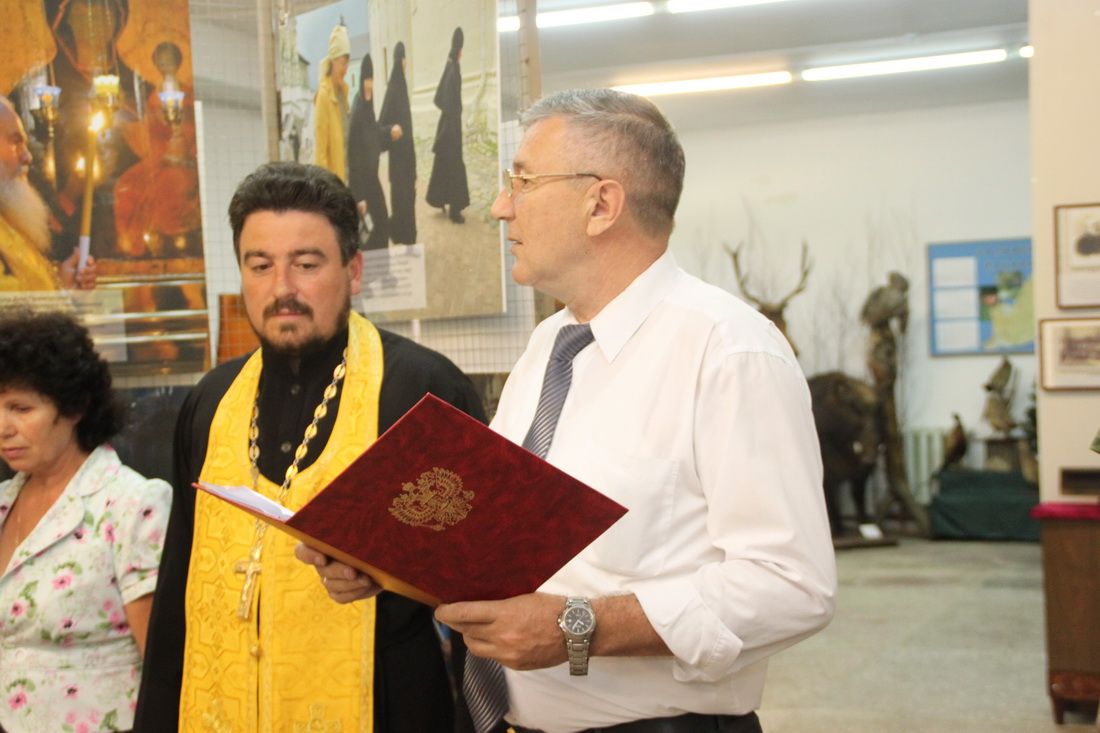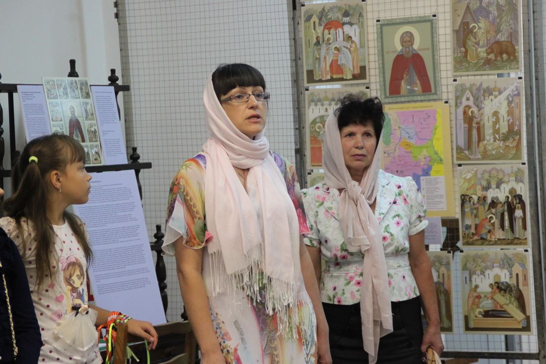 - Выставку несколько задержали в Лучегорске, но мы ждали её открытия и открыли точно по плану, 3 июля. Гостей пригласили заранее и, несмотря на утро буднего дня, посетителей собралось немало. На открытии очень проникновенные слова сказал глава администрации. На открытие собрались разные люди, но всех растрогал молебен и рассказ о святом Сергии отца Григория, настоятеля нашего храма. На открытии выставки присутствовали сотрудники администрации Лесозаводского городского округа, в том числе и руководитель отдела культуры, молодежной политики и спорта Юлия Сергеевна Мартёха.
