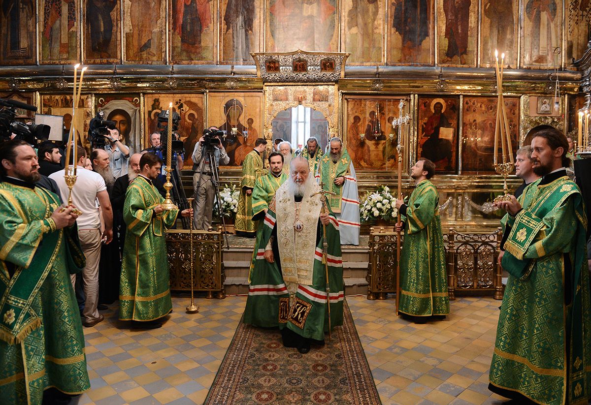 18 июля, в праздник обретения честных мощей преподобного Сергия, игумена Радонежского, Святейший Патриарх Московский и всея Руси Кирилл возглавил служение Божественной литургии на Соборной площади Троице-Сергиевой лавры.