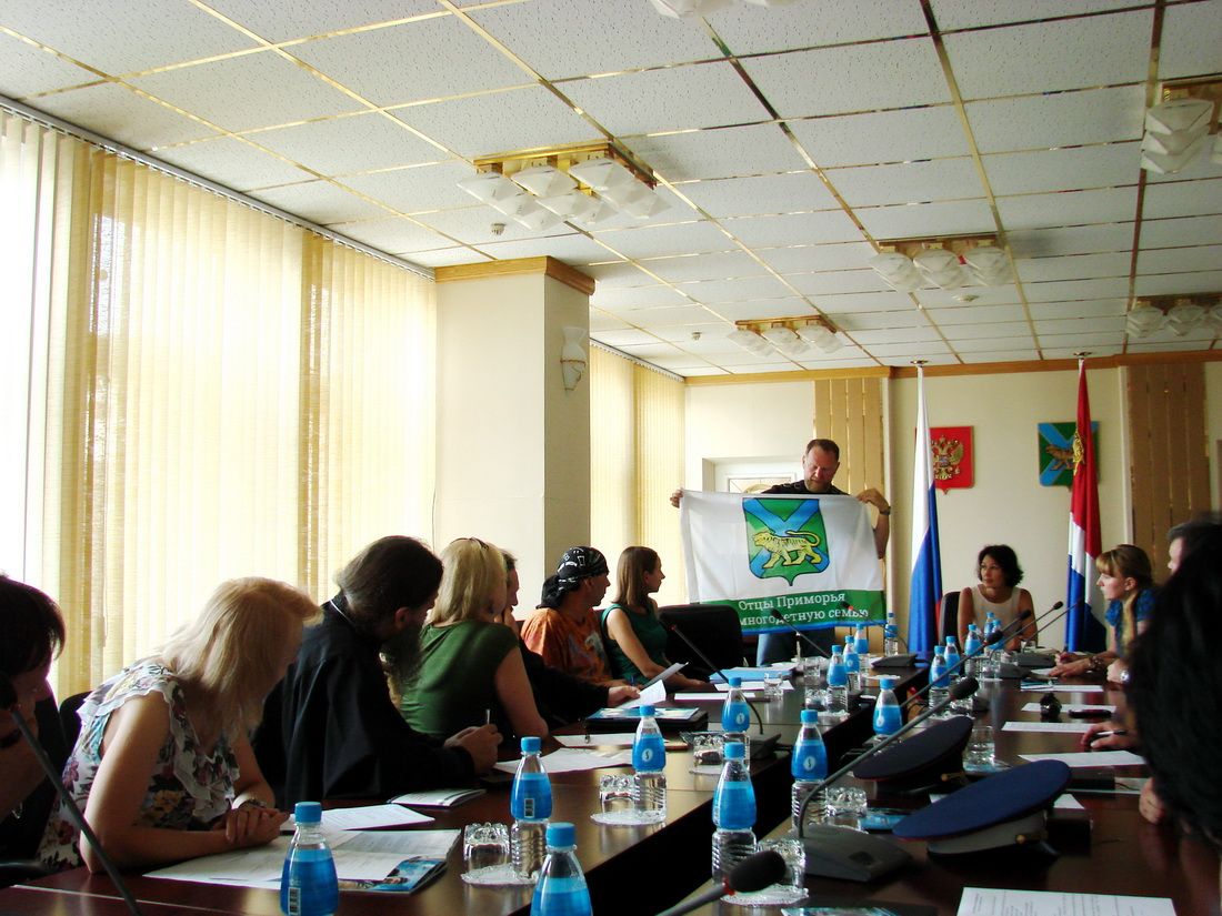 Владивосток. 23 июля 2014 года в администрации Приморского края состоялось совещание, на котором были рассмотрены вопросы проведения мотопробега Владивосток – Москва «Отцы России за многодетную семью» на территории Приморского края. В совещании приняли участие сотрудники Департамента внутренней политики, участники мотопробега, руководитель отдела церковной благотворительности и социального служения ключарь Покровского собора протоиерей Александр Талько, председатель комиссии по защите материнства и детства протоиерей Андрей Метелёв, Президент благотворительного фонда "Мама", руководитель Владивостокского мотоклуба Валерий Володарский и другие.