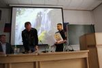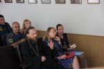 Протоиерей Сергий и председатель комиссии по защите материнства и детства Владивостокской епархии протоиерей Андрей Метелёв раздали всем сидящим в зале маленькие иконы святых благоверного великого князя Димитрия Донского и его супруги преподобной Ефросинии Московской.