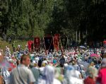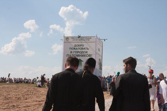 Сразу по приходу на Благовещенское поле состоялся благодарственный молебен, возглавляемый Святейшим Патриархом, а потом все разошлись по палаткам, чтобы уже в 21 час прийти на Всенощное бдение здесь же на Благовещенском поле, а в полночь – на Божественную литургию. К сожалению, мы, как говорится, по немощи своей пропустили эти службы.