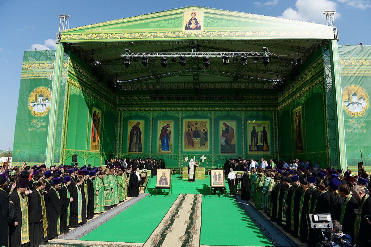 После Литургии был изумительная проповедь Святейшего Патриарха, а затем на Красногорской площади перед Лаврой прошёл большой праздничный концерт, проецируемый на огромный экран. Проникновенно и искренне, в тон Празднику, пел Сергей Безруков "Почему так в России берёзы шумят…"