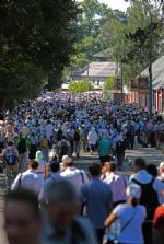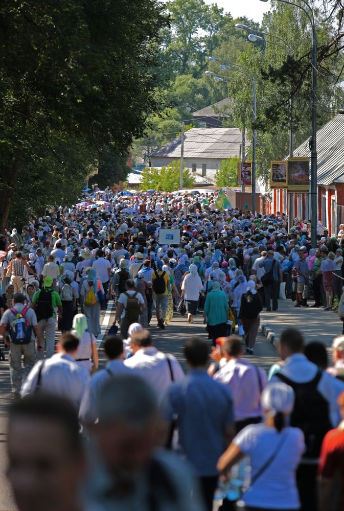 15-километровый путь от Хотькова, где покоятся родители Преподобного, мощам которых мы поклонились, до Сергиева Посада прошли с одним привалом; невзирая на жару, шли как-то легко и свободно, с непрекращающейся молитвой; было особенно радостно от сознания, что впереди идёт наш Патриарх. Уже на подходе к Посаду нас встречали местные жители с бутылками воды (жара была под 30 градусов, но переносилась гораздо легче, чем в нашем приморском городе), а когда вступили на городские улицы, нас – к великой радости всех, особенно ребятишек, которых, слава Богу, было так много с нами – стали обливать из огородных шлангов. Блаженство!