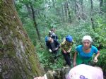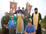 В итоге собрались 31 человек. Были и те, кто уже неоднократно проверял свои силы, были и новички. Помолившись перед дорогой, участники двинулись привычным маршрутом по узкой тропе, всё более зарастающей травой и кустарником. Отвлекаться на разговоры было некогда, поочередно (мужчины и женщины) молились Иисусовой молитвой от самого начала пути и до конца. Можно, сказать, что молитва несла нас, как на крыльях. Подъём в гору облегчался тем, что стоял туман, не было палящего солнца и духоты. Правда из-за тумана мы не на этот раз увидели прекрасные виды, открывающиеся с вершины сопки.