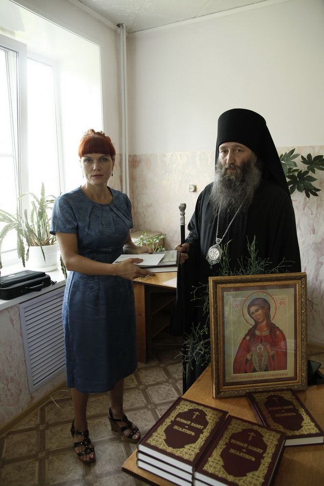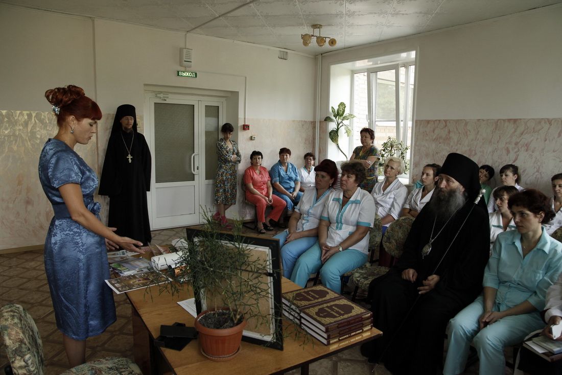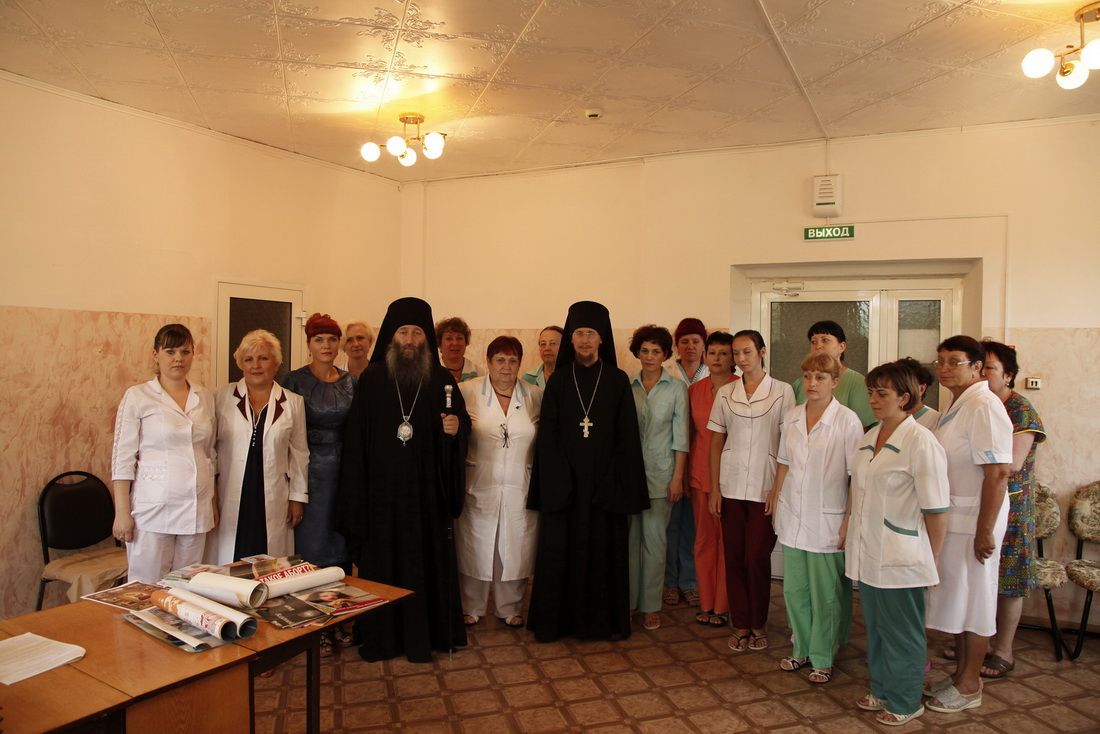 Владыка вручил главврачу и заведующей родильным отделением книги о духовной жизни. Сотрудники получили в подарок Евангелия с Псалтирью. Кабинету доабортного консультирования епископ Гурий подарил икону Божией Матери «В родах помощница». Кабинету подарили необходимые новые стулья.