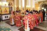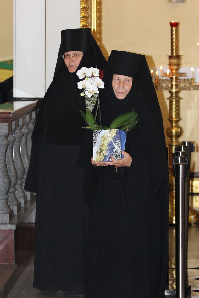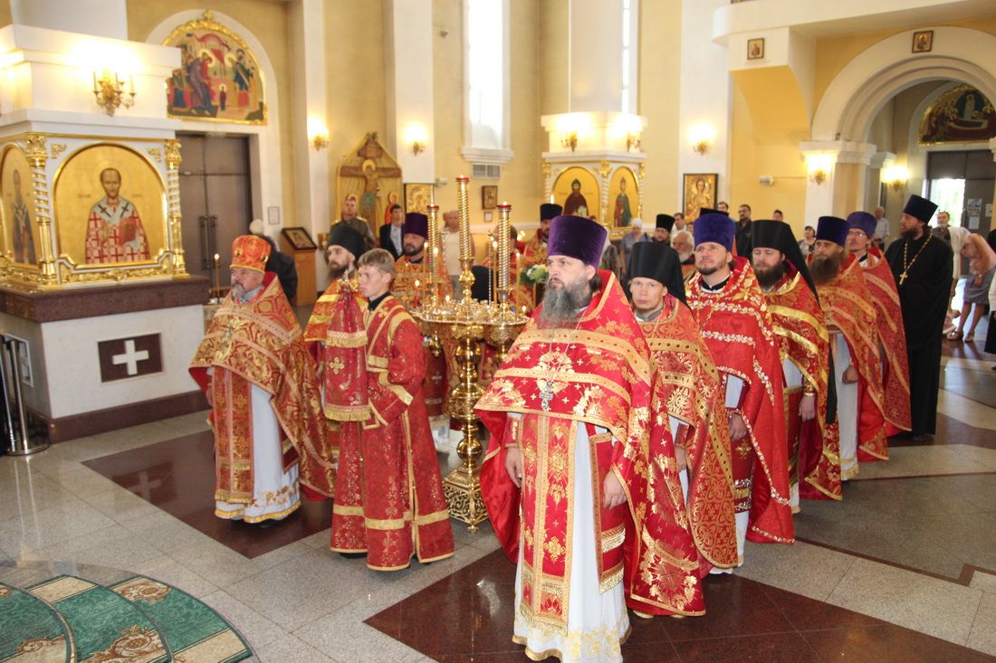 Его Высокопреосвященству сослужили: ключарь Покровского кафедрального собора протоиерей Александр Талько; благочинный I округа Владивостокской епархии о.Димитрий Федорин; руководитель епархиального Отдела по взаимодействию с вооружёнными силами, ключарь Свято-Никольского кафедрального собора протоиерей Виктор Жильцов; благочинный II округа епархии протоиерей Сергий Якутов; благочинный VI округа епархии протоиерей Владимир Капитанюк; настоятель Свято-Серафимовского монастыря игумен Климент (Кривоносов); духовенство Владивостокской и Находкинской епархий. За богослужением молилась настоятельница Богородице-Рождественского женского монастыря игумения Варвара (Волгина).