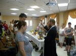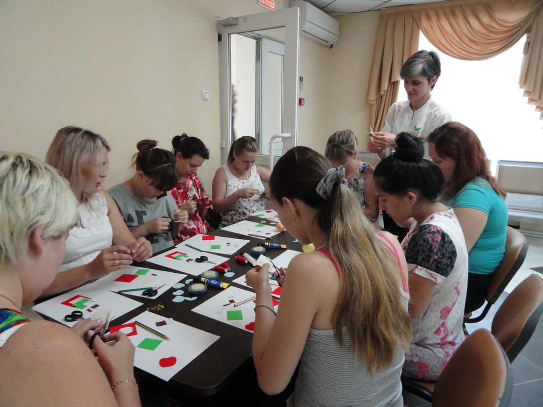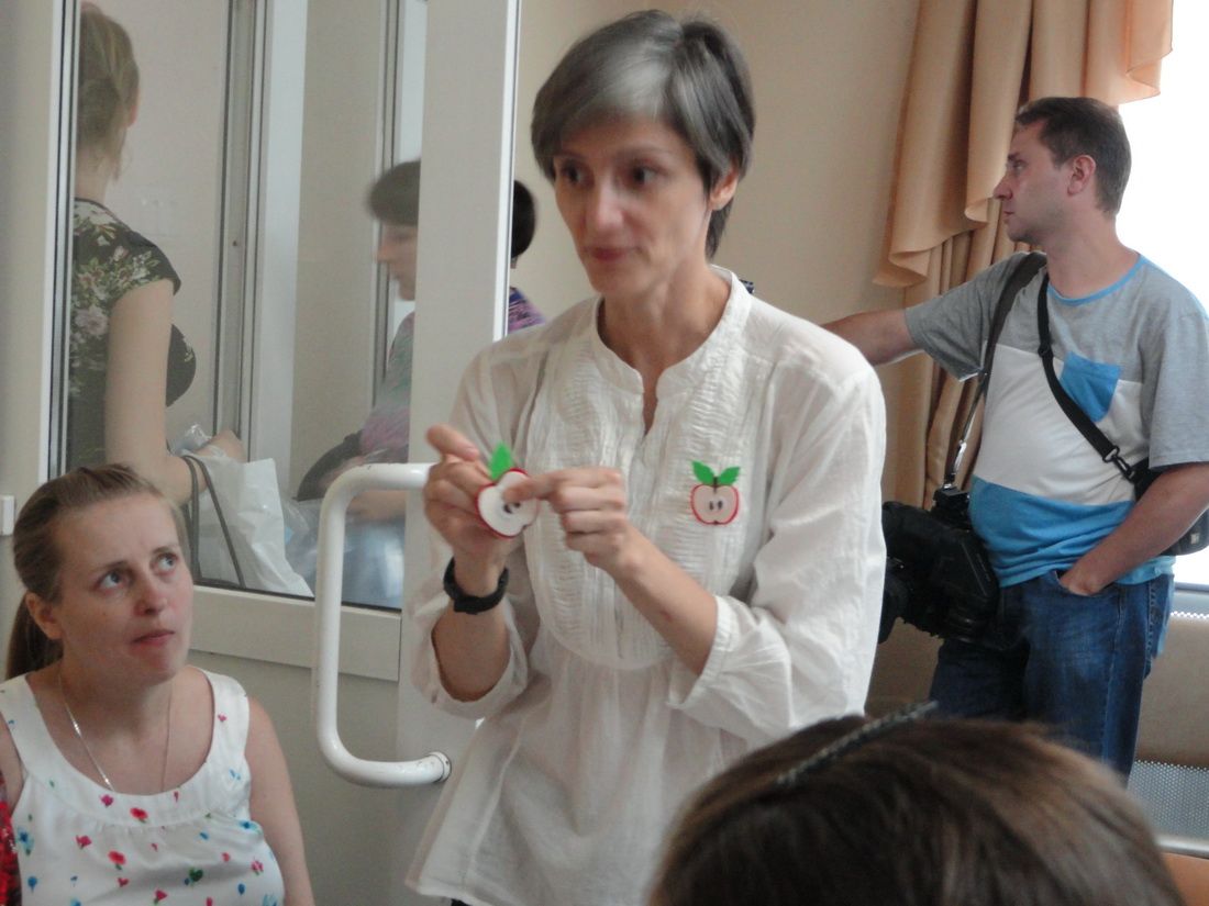 После угощения освящёнными фруктами и яблочным соком будущие мамы отправились на занятие в творческую мастерскую «Мамины руки», работающую при роддоме. При помощи дизайнера Василины Мазур пациентки роддома в честь праздника творили уникальные поделки на «яблочную» тематику. Согревающие душу поделки украсят дом и наверняка приглянутся малышам.