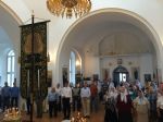- Перед юбилейной хоругвью мы отслужили молебен преподобному Сергию Радонежскому. На предстоящей седмице будет двунадесятый праздник Успения Божией Матери. В день праздника мы не будем служить молебен преподобному Сергию, а в остальные дни в 10 часов утра будем совершать молебны. Подробнее о расписании молебнов можно узнать в расписании богослужений храма Покрова Божией Материи по тел. (42337) 4-43-91.