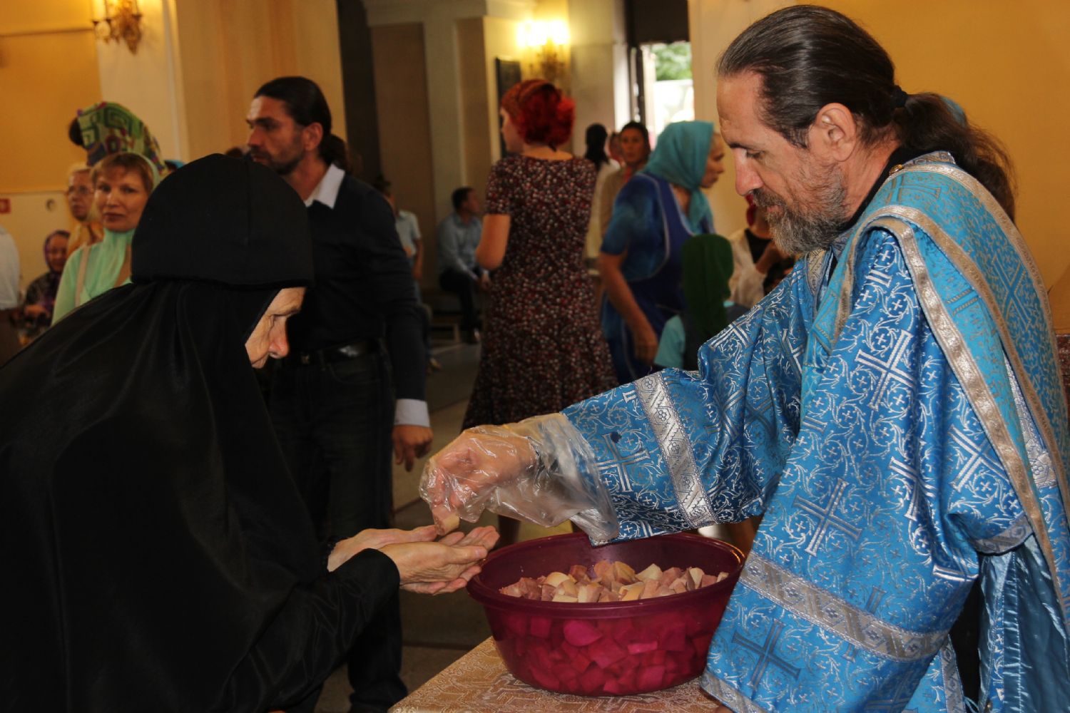 Традиционно в праздник Успенский храм празднично украшается флористами – в память о Святом Придании, гласящем, что Архангел Гавриил, сообщая весть о скором успении Божией Матери, принёс Ей цветок из райского сада.