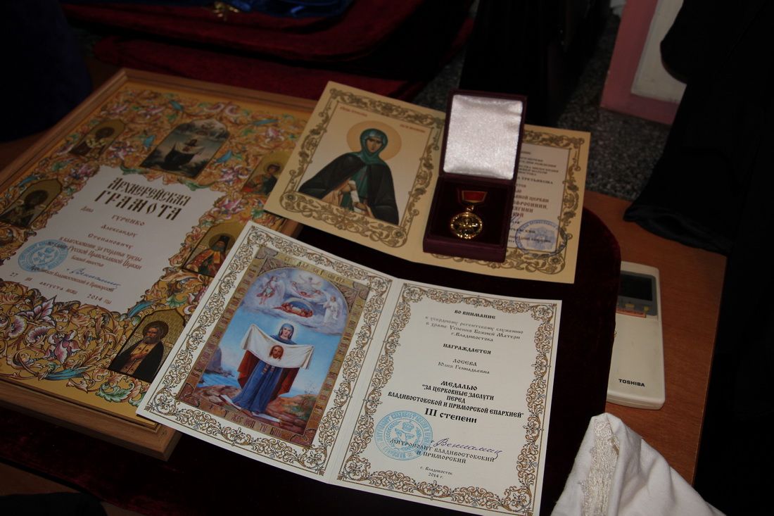 - Архиерейской награды – медали «За церковные заслуги перед Владивостокской и Приморской епархией III степени» удостоена регент хора Успенского храма Юлия Геннадьевна Лосева;