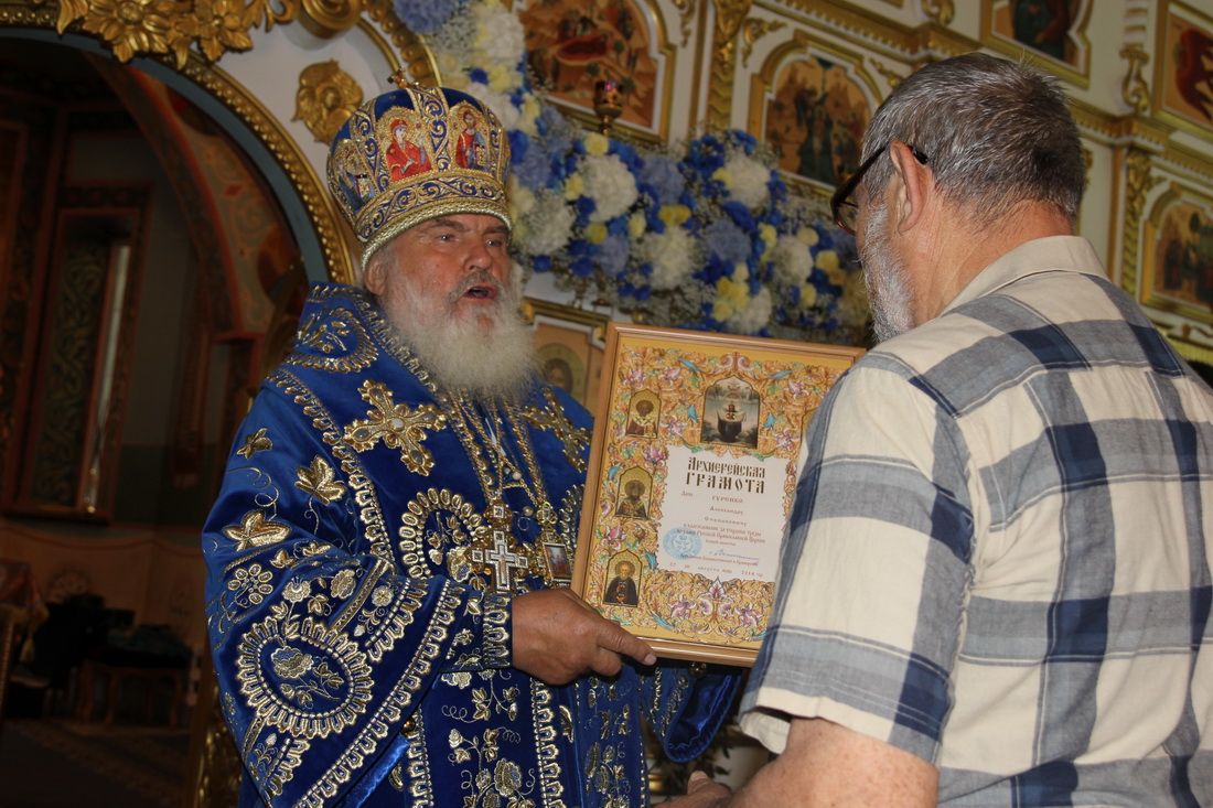 По совершении богослужения владыка Вениамин вручил награды работникам Успенского прихода: