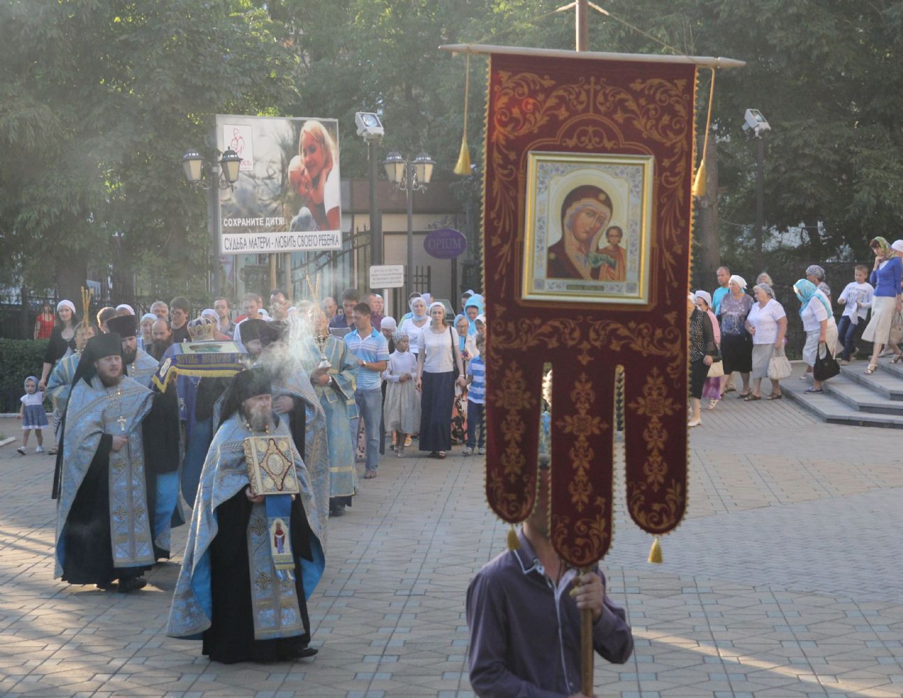 После великого славословия состоялся крестный ход с плащаницей с изображением Успения Пресвятой Богородицы. Шествие, которое возглавил Глава Приморской митрополии, проследовало вокруг Покровского кафедрального собора.