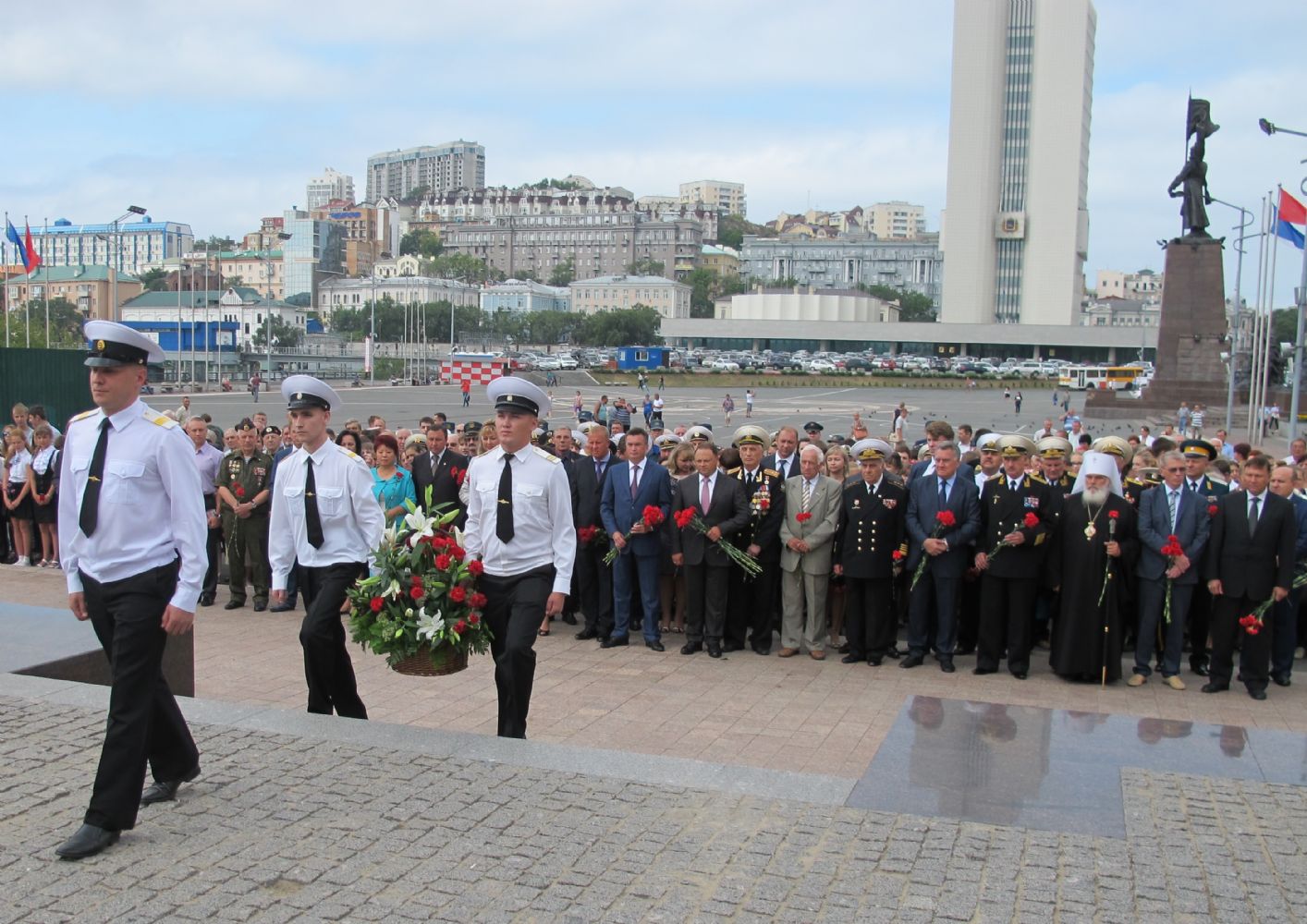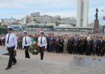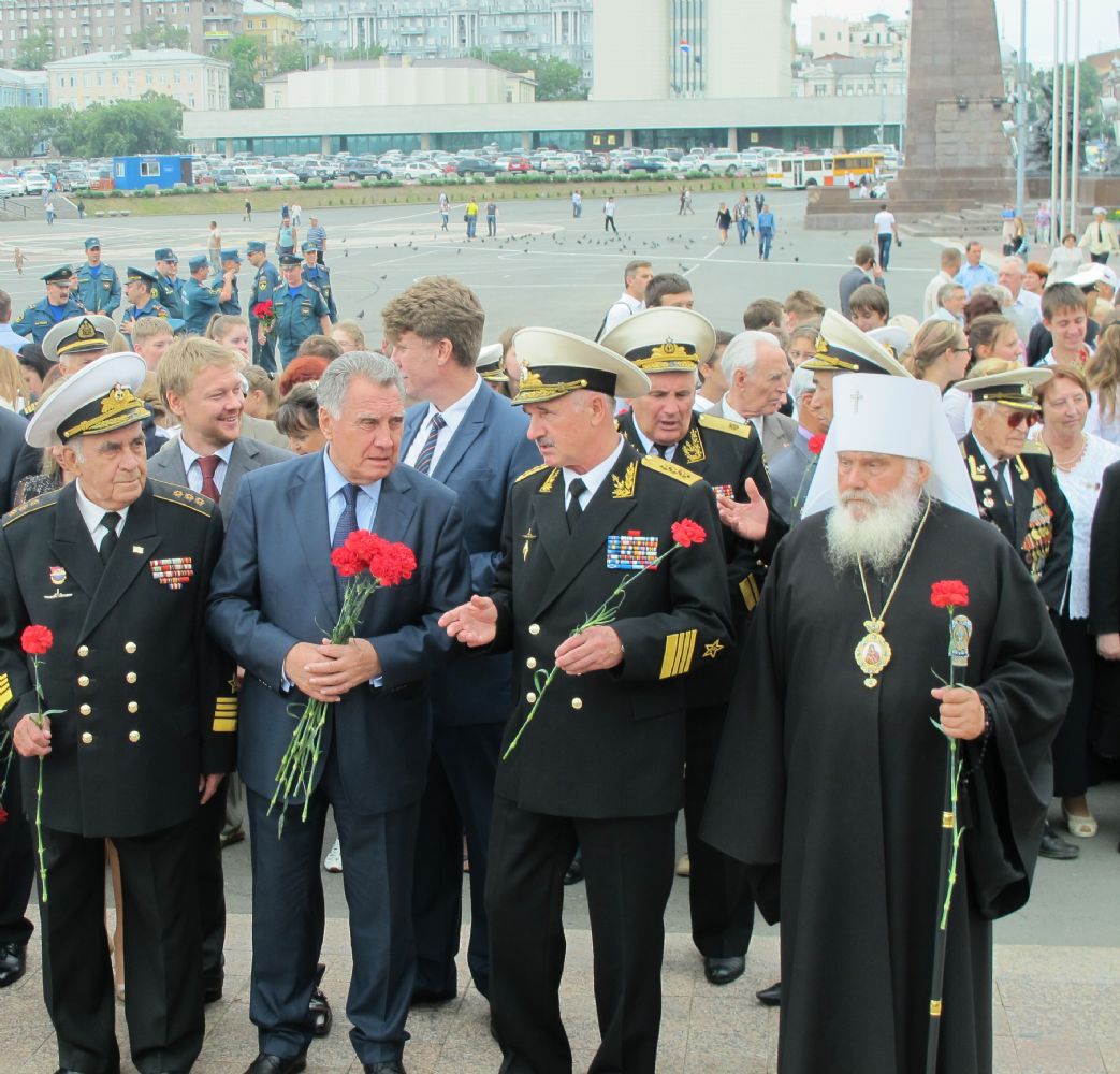 Вместе с ветеранами, руководством Приморского края и депутатского корпуса, представителями общественности Его Высокопреосвященство стал участником церемонии возложения венков к стеле «Владивосток – город воинской славы» и к Вечному огню мемориала «Боевая слава Тихоокеанского флота».