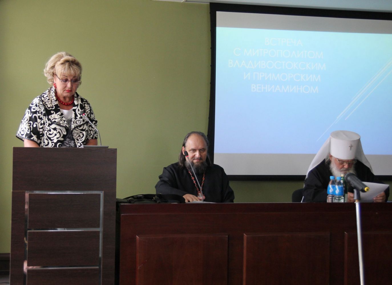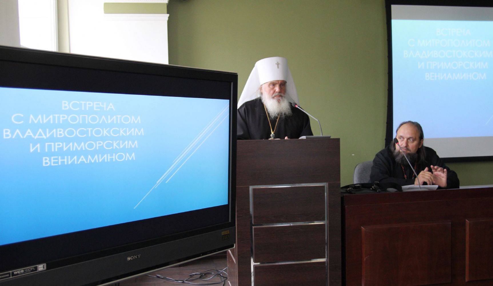 В начале встречи митрополит Владивостокский и Приморский Вениамин обратился к педагогам, священнослужителям и гостям чтений с приветственным словом, отметив, прежде всего, что «сохранить качество образования удалось за счёт личного подвига педагогов!»
