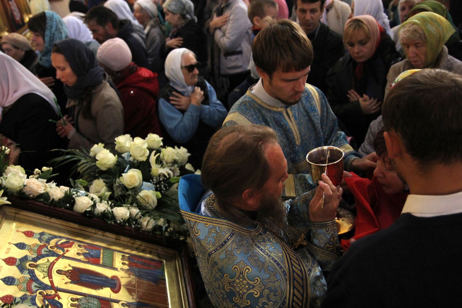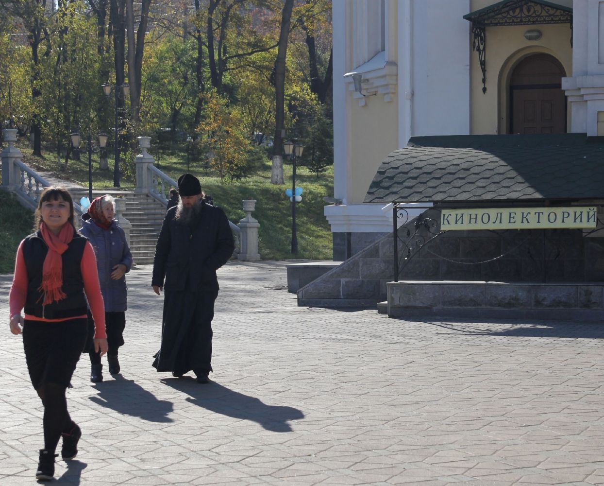 Владивосток. 14 октября 2014 года, в день празднования Покрова Пресвятой Владычицы нашей Богородицы и Приснодевы Марии в кафедральном соборе Владивостока Божественную литургию совершил ключарь храма - протоиерей Александр Талько в сослужении благочинного собора игумена Тихона (Иршенко) и священников храма – игумена Антония (Каменчука), иерея Димитрия Брызгалова, иерея Максима Точукова.