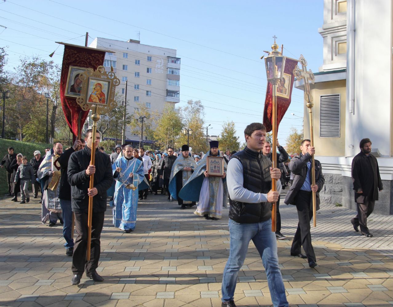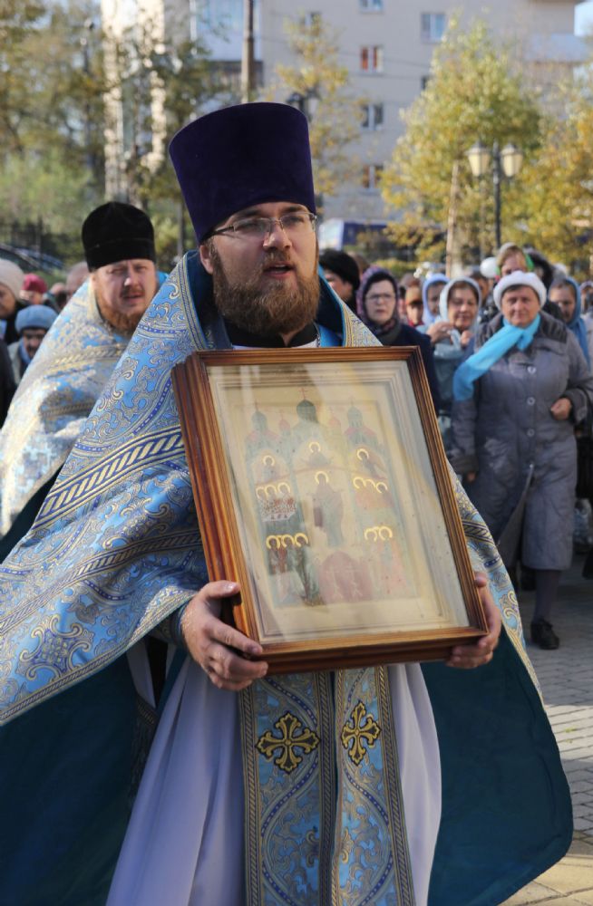 Молитвенную часть торжеств украсил водосвятный молебен. Затем верующие прошли Крестным ходом вокруг Покровского кафедрального собора. Обращаясь к прихожанам с пастырским словом, о.Александр напомнил, что праздник Покров установлен в память о чудесном явлении Божией Матери во Влахернском храме в Константинополе в 910 году. А на Руси на Покров верующие испрашивают у Царицы Небесной защиты и помощи: «Помяни нас во Твоих молитвах, Госпоже Дево Богородице, да не погибнем за умножение грехов наших, покрой нас от всякаго зла и лютых напастей; на Тя бо уповаем и, Твоего Покрова праздник чествующе, Тя величаем».