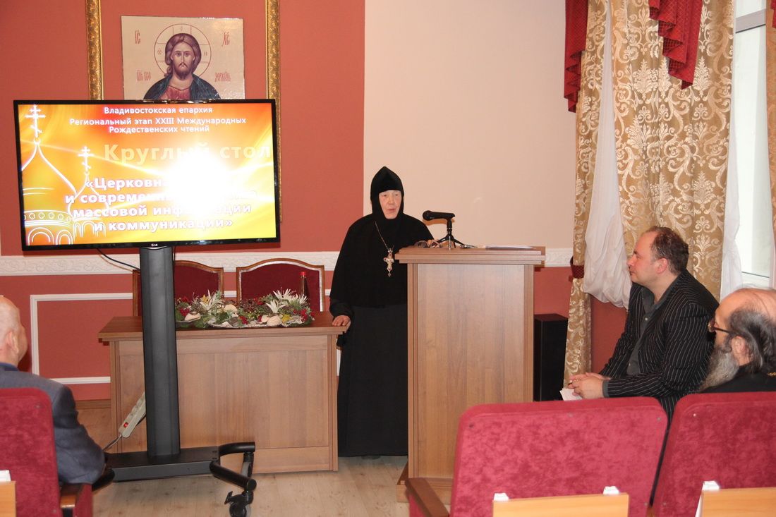 Викарий Владивостокской епархии епископ Уссурийский Иннокентий вручил руководителю Информационно-издательского отдела Владивостокской епархии Сергею Константиновичу Карабанову, автору и режиссеру фильма, Благодарственное письмо от имени митрополита Вениамина. Закончилась встреча рассказом настоятельницы Марфо-Мариинского женского монастыря на Седанке игумении Марии (Пономаревой) о своём дедушке, расстрелянном в 37-м. Матушка Мария прочитала свои стихи, посвящённые этому страшному времени.