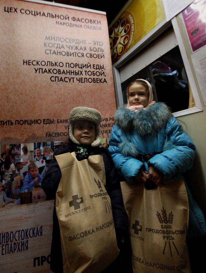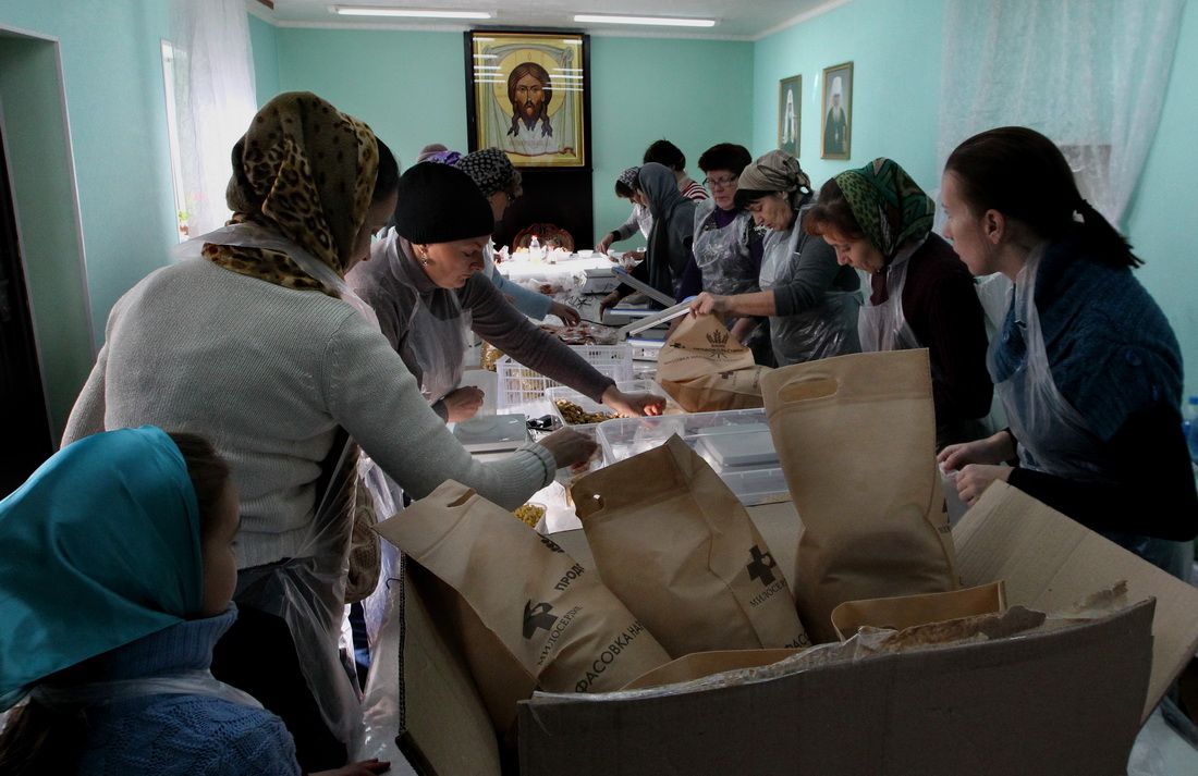 Владивосток. Отдел по церковной благотворительности и социальному служению Владивостокской епархии и добровольцы службы "Милосердие" вновь собрались, чтобы расфасовать "Народные обеды" для малоимущих. Продовольственные наборы ранее получили малоимущие и многодетные семьи Владивостока.