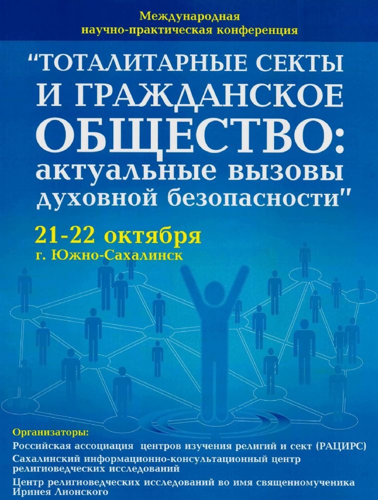 Южно-Сахалинск. Викарий Владивостокской епархии епископ Уссурийский Иннокентий принял участие в международной научно-практической конференции «Тоталитарные секты и гражданское общество: актуальные вызовы духовной безопасности». Ее работа проходила на протяжении двух дней, с 21 по 22 октября 2014 года, за это время участники конференции обсуждали актуальные вопросы из сферы религиозной жизни. Организаторы форума: Южно-Сахалинская епархия; Российская ассоциация центров изучения религий и сект (РАЦИРС); Центр религиоведческих исследований во имя священномученика Иринея Лионского.