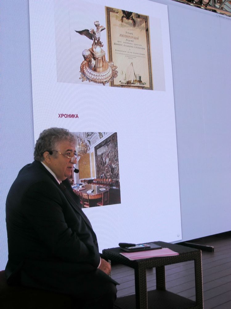 А после лекции были вопросы от участников форума, причем не только по византийскому искусству. И это не удивительно, ведь спикер, помимо того, что он действительный член Российской академии художеств, является еще и президентом Русско-Греческого творческого союза художников, академиком Российской академии естественных наук, членом Международной академии творчества, Петровской академии наук и искусств и многих других творческих союзов.