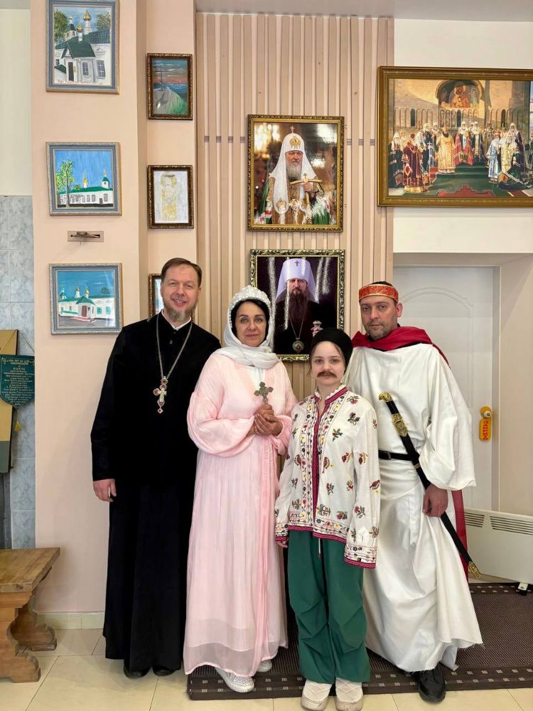 Затем творческий коллектив храма показал театрализованную постановку о Крещении Руси и роли христианства в распространении грамотности среди простого населения. Зрители погрузились в атмосферу тех далеких времен благодаря ярким образам прославленных святых: преподобного Нестора Летописца, апостола Андрея Первозванного, князей Аскольда и Дира, равноапостольных княгини Ольги и князя Владимира.