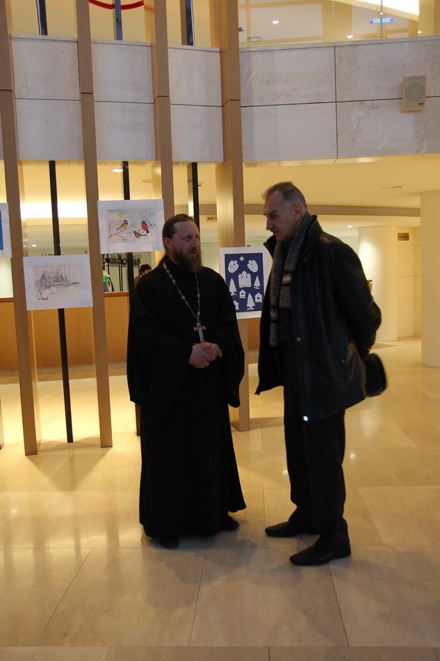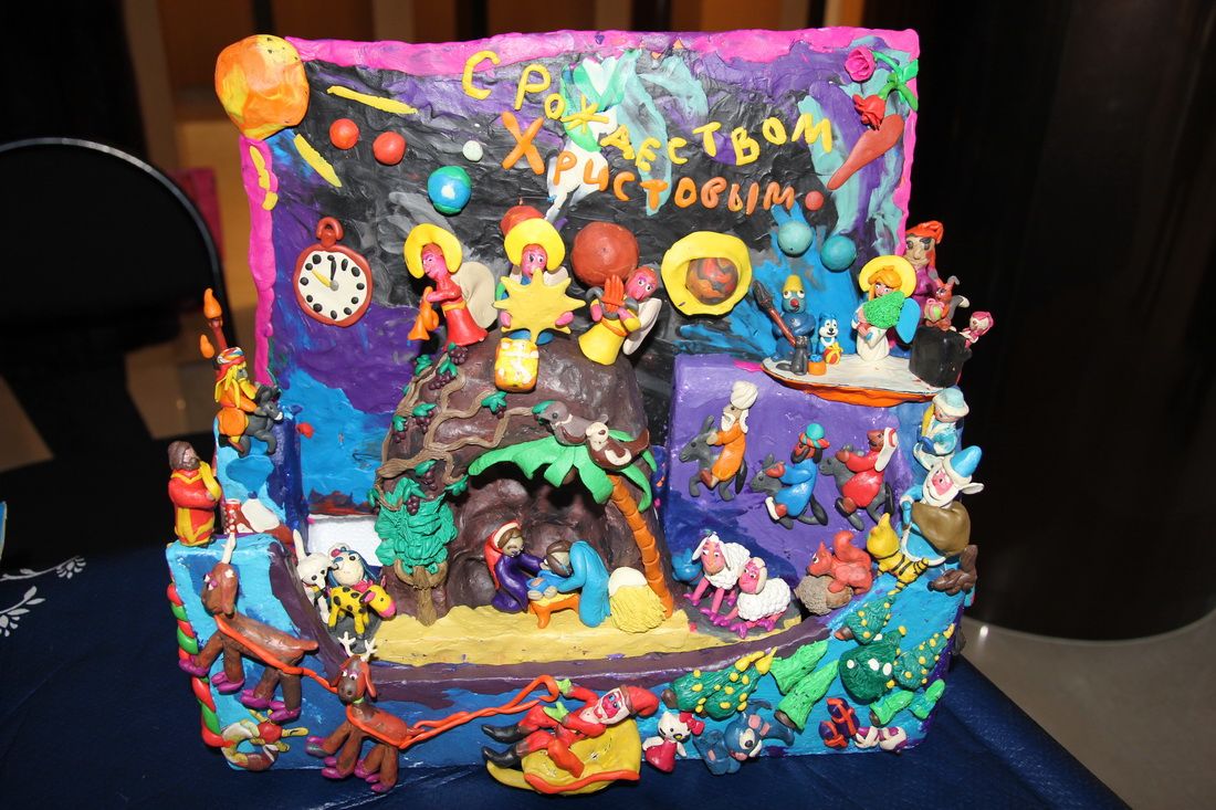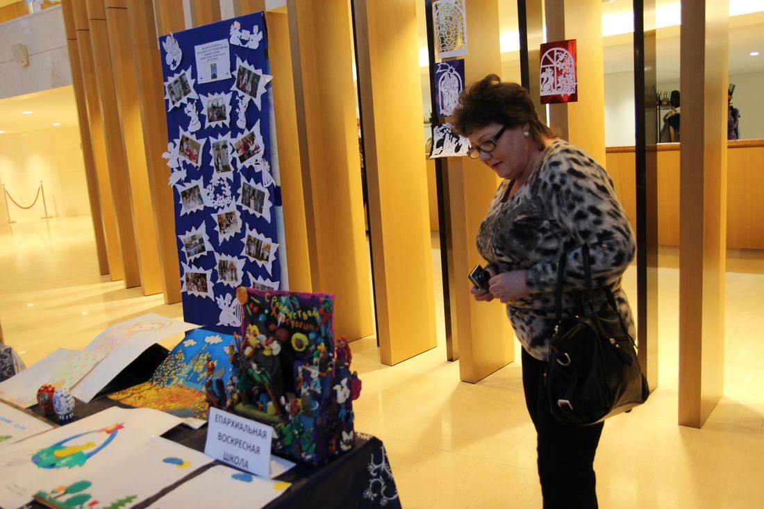 В холле театра прошла выставка творческих работ воспитанников воскресных школ. С работами на конкурс на лучший Рождественский вертеп познакомились и зрители, и жюри конкурса. Члены жюри не только знакомились с работами детей, но обращали внимание и на реакцию зрителей. Результаты конкурсу объявят через несколько дней.