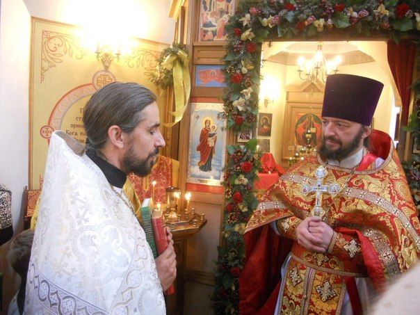 В праздничном богослужении настоятелю храма протоиерею Максиму Романенко сослужил протоиерей Олег Дикмаров, ключарь Успенского храма Владивостока.