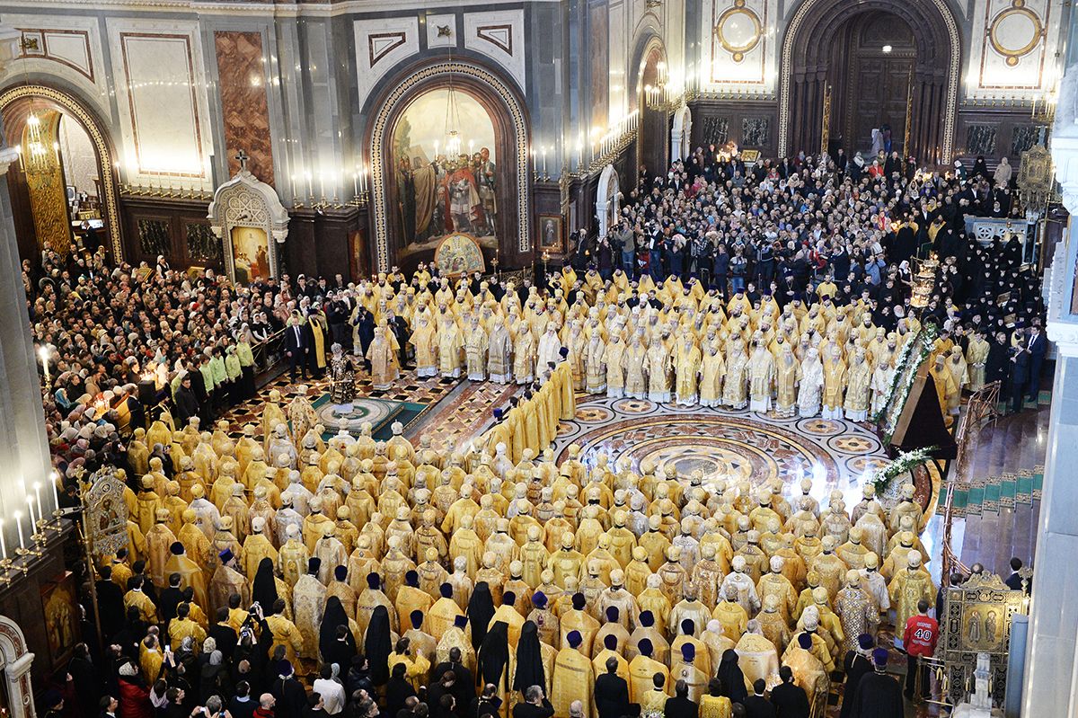 - В воскресенье Храм Христа Спасителя был полностью заполнен людьми. Прибыли владыки из разных епархий, в том числе, значительное число - из самоуправляемой Украинской Православной Церкви во главе с Блаженнейшим митрополитом Онуфрием. Сейчас в Русской Православной Церкви около 330 архиереев.