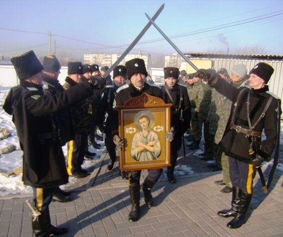 29 января 2012 казаки Манзовского казачьего округа торжественно передали эту икону в храм Архистратига Михаила.