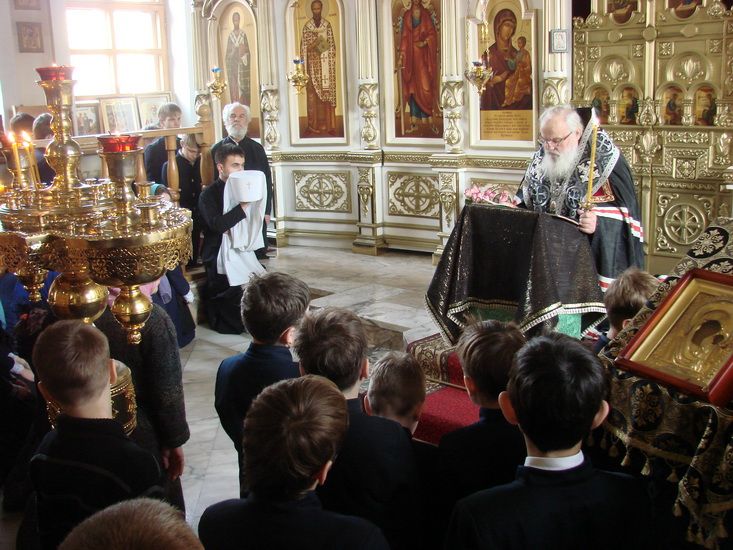 - В первые четыре дня Великого поста вечером читают Великий Покаянный канон и практически все ученики Православной гимназии в эти дни в храмах. Поэтому руководство гимназии даёт очень небольшое послабление гимназистам в количестве домашних заданий. Что касается питания – у нас принято решать этот вопрос родителям индивидуально с духовником. Конечно, растущим детям не стоит сильно ограничивать себя в рыбных продуктах и твороге. Мы настаиваем на безусловном отказе от лакомств, сладостей, развлечений, в особенности от телепрограмм и компьютерных игр. Подвижных игр на свежем воздухе это не касается. В сердце русского монашества, в Троице-Сергиевой Лавре в Семинарии и Академии, семинаристов кормят Великим постом рыбой, кроме среды, пятницы и Страстной седмицы. Это делается не для того, чтобы порадовать вкусненьким, а для поддержания здоровья.