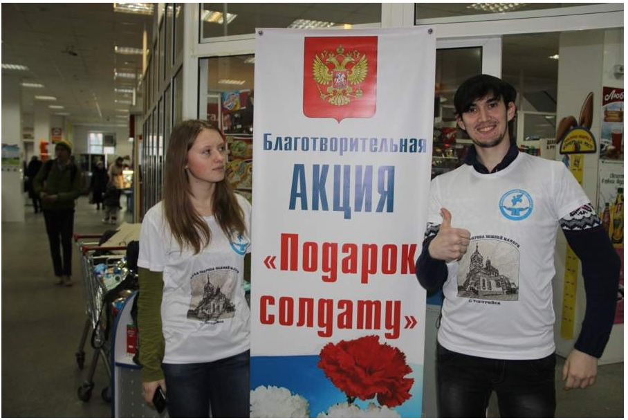 Уссурийск. Социальная служба Покровского храма г. Уссурийска совместно с молодёжным движением «Лествица» организовала и провела в торговом центре «Антарес» благотворительную акцию «Подарок солдату». Подарки для солдат, собранные волонтёрами в ходе акции и пожертвования прихожан храма позволили приготовить 14 посылок для 242 военнослужащих, находящихся на излечении в военном госпитале г. Уссурийска.