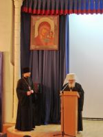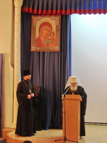 Митрополит Вениамин, как заведующий кафедрой теологии и религиоведения ДВФУ вручил дипломы выпускникам, завершившим обучение на Кафедре теологии и религиоведения Дальневосточного федерального университета по программе двухгодичной переподготовки. Среди них ключарь храма Успения Божией Матери Владивостока протоиерей Олег Дикмаров.