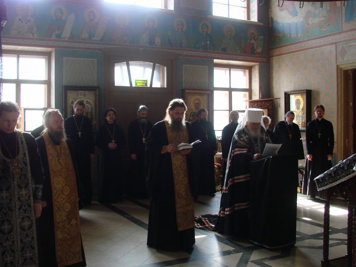 Митрополит Вениамин ознакомил настоятелей храмов с «Постановлениями Архиерейского совещания Русской Православной Церкви (2-3 февраля 2015 года)» документом «Об участии верных в Евхаристии». Состоялось обсуждение некоторых сложных случаев исповеди и допуска к причастию.