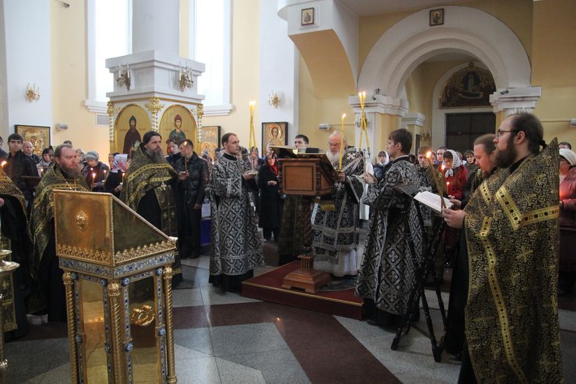 В четверг, 9 апреля, в Великий Четверг Высокопреосвященнейший владыка Вениамин совершил в Покровском кафедральном соборе Божественную литургию. В Четверг Страстной седмицы в богослужении воспоминается важнейшее событие, совершившиеся в этот день: Тайная Вечеря, на которой Господь установил новозаветное таинство Святого Причастия (Евхаристии).