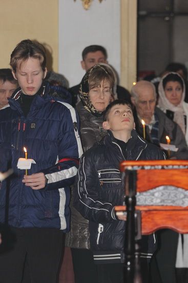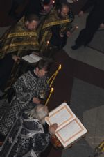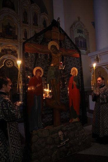 Вечером 9 апреля митрополит Вениамин отслужил утреню Великого Пятка на которой читаются 12 Евангелий (12 отрывков), избранных из всех четырёх евангелистов. В этих чтениях подробно повествуется о последних часах земной жизни Спасителя, начиная с Его прощальной беседы с учениками после Тайной Вечери и до Его погребения в саду праведным Иосифом Аримафейским.