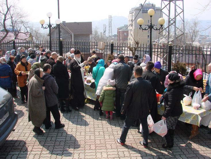 Владивосток. 11 апреля 2015 года, в Великую субботу, митрополит Владивостокский и Приморский Вениамин совершил Божественную литургию в Никольском кафедральном соборе в сослужении соборного духовенства.