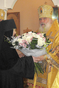 От лица духовенства Владивостока ключарь Покровского собора протоиерей Александр Талько преподнес митрополиту Вениамину праздничный букет.
