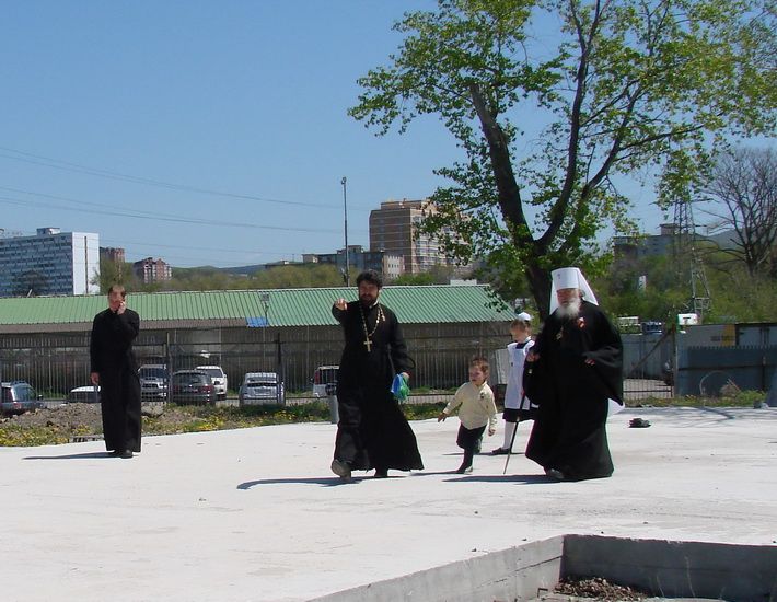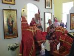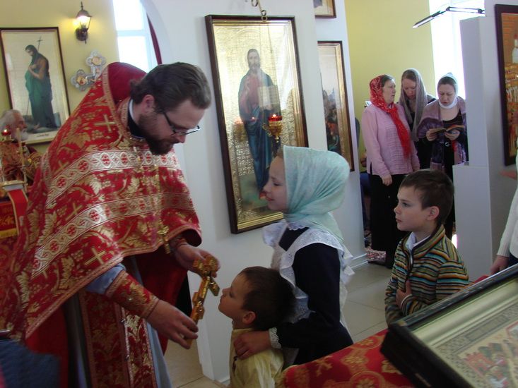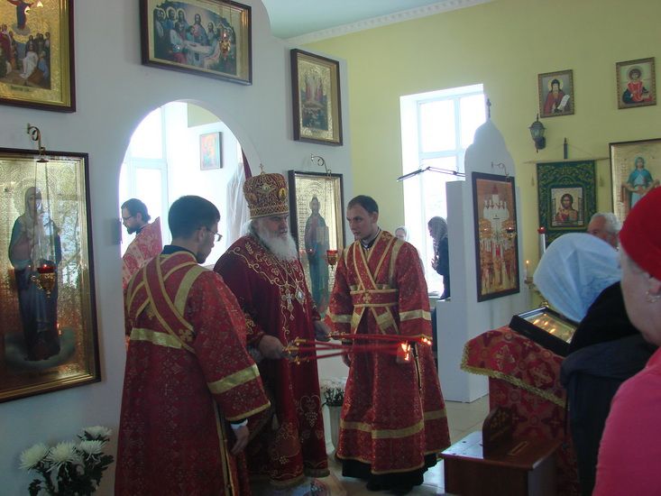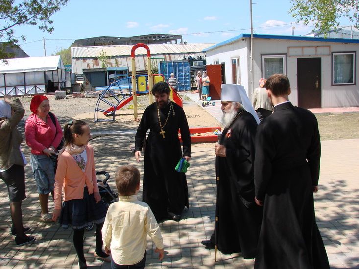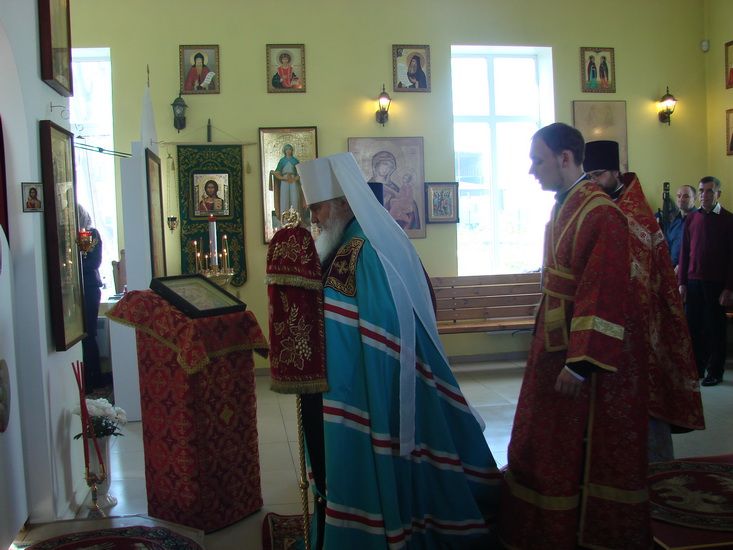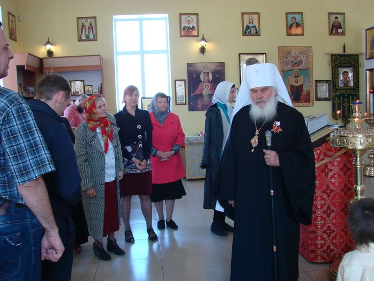 По окончании Литургии владыка Вениамин произнёс проповедь, в которой поздравил с воскресным днём – малой Пасхой. Владыка рассказал о роли Церкви в Победе в Великой Отечественной, особо обратил внимание на то, почему Господь попускает войны, ответил на вопросы прихожан. Далее Митрополит Вениамин в сопровождении настоятеля, протоиерея Андрея осмотрел фундамент строящегося храма в честь иконы Божией Матери "Всех скорбящих Радость".