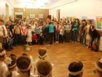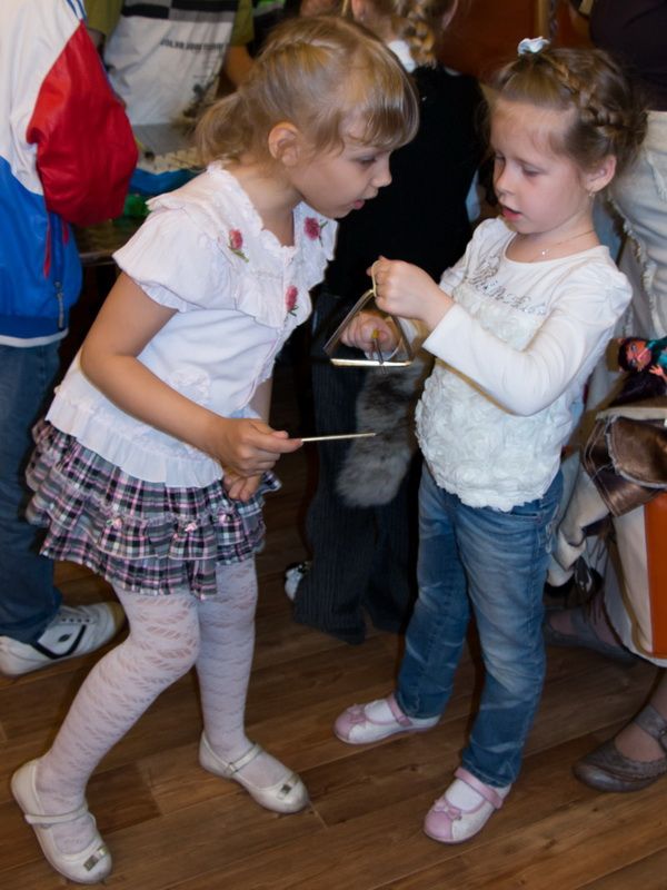 После окончания концерта преподаватели воскресной школы Владивостокской епархии «Серафимов ручеёк» Анна Анатольевна Сердюкова и Юлия Евгеньевна Никонович провели замечательные мастер-классы для зрителей – участников выставки. Ребята получили возможность научиться играть на шумовых инструментах, выполнить коллективную работу «Птички на березках».