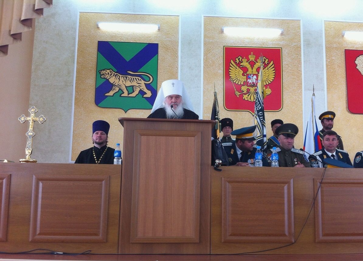 Уссурийск. Митрополит Владивостокский и Приморский Вениамин посетил 27 июня 2015 года Казачий круг, который проводился Приморским отделом Уссурийского казачьего войска. Вместе с Его Высокопреосвященством в работе отдельского Казачьего круга участвовали священники, которые занимаются во Владивостокской епархии взаимодействием с казачеством: руководитель Епархиального отдела по работе с казачеством, благочинный II округа епархии протоиерей Сергий Якутов; его помощник иерей Сергий Качев, духовенство города Уссурийска.