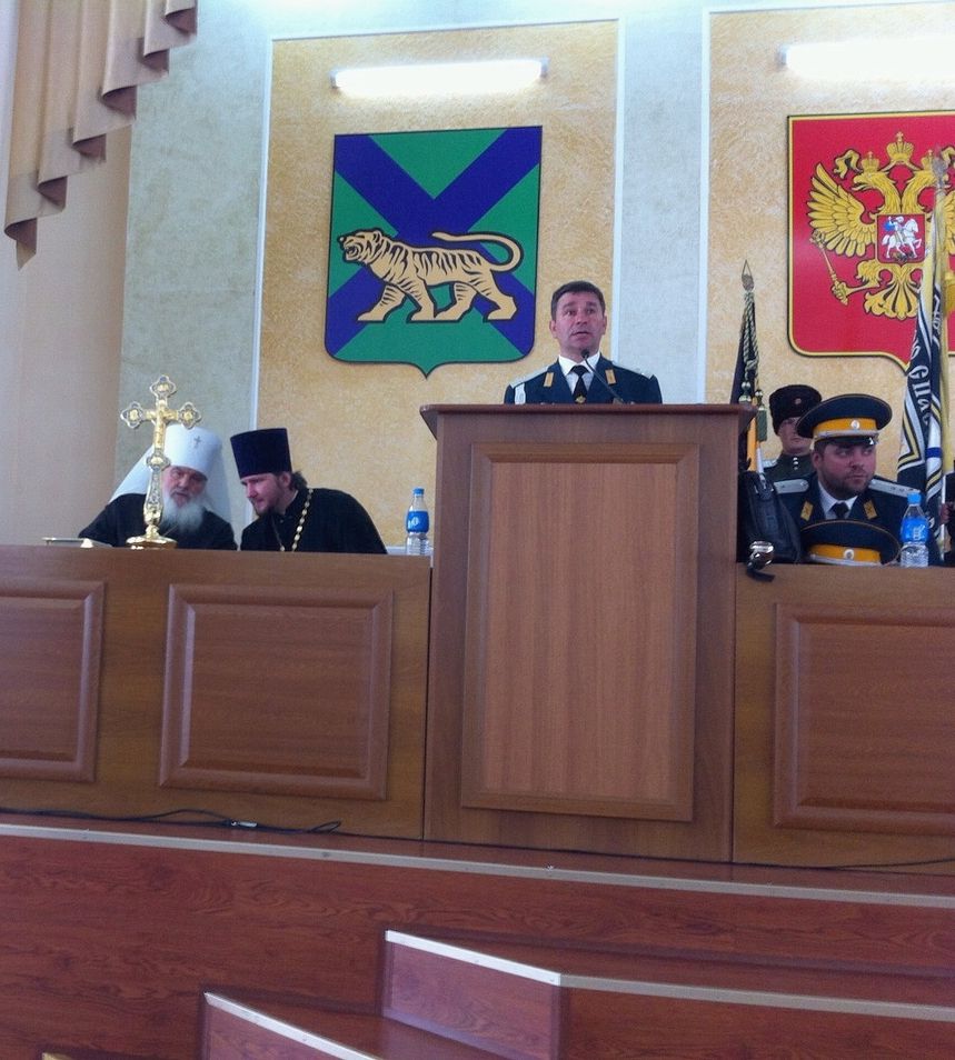 Виктор Иванович Чичиль принял присягу на Святом Евангелии и получил благословение митрополита Владивостокского и Приморского Вениамиина. В.И.Чичиль сменил атамана И.Г.Доценко, чьи полномочия истекли (Игорь Геннадьевич был атаманом два срока подряд – с апреля 2009 года, переизбирался в 2012 году). Атаманские полномочия возлагаются не более чем на два срока подряд.